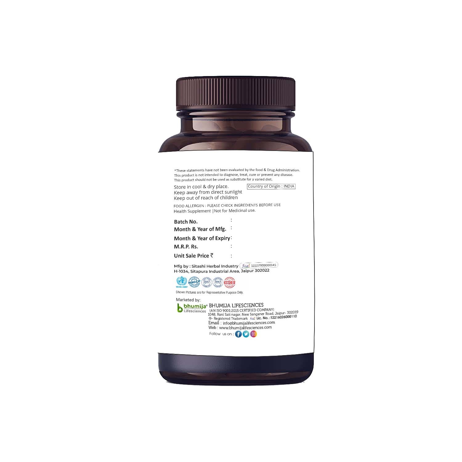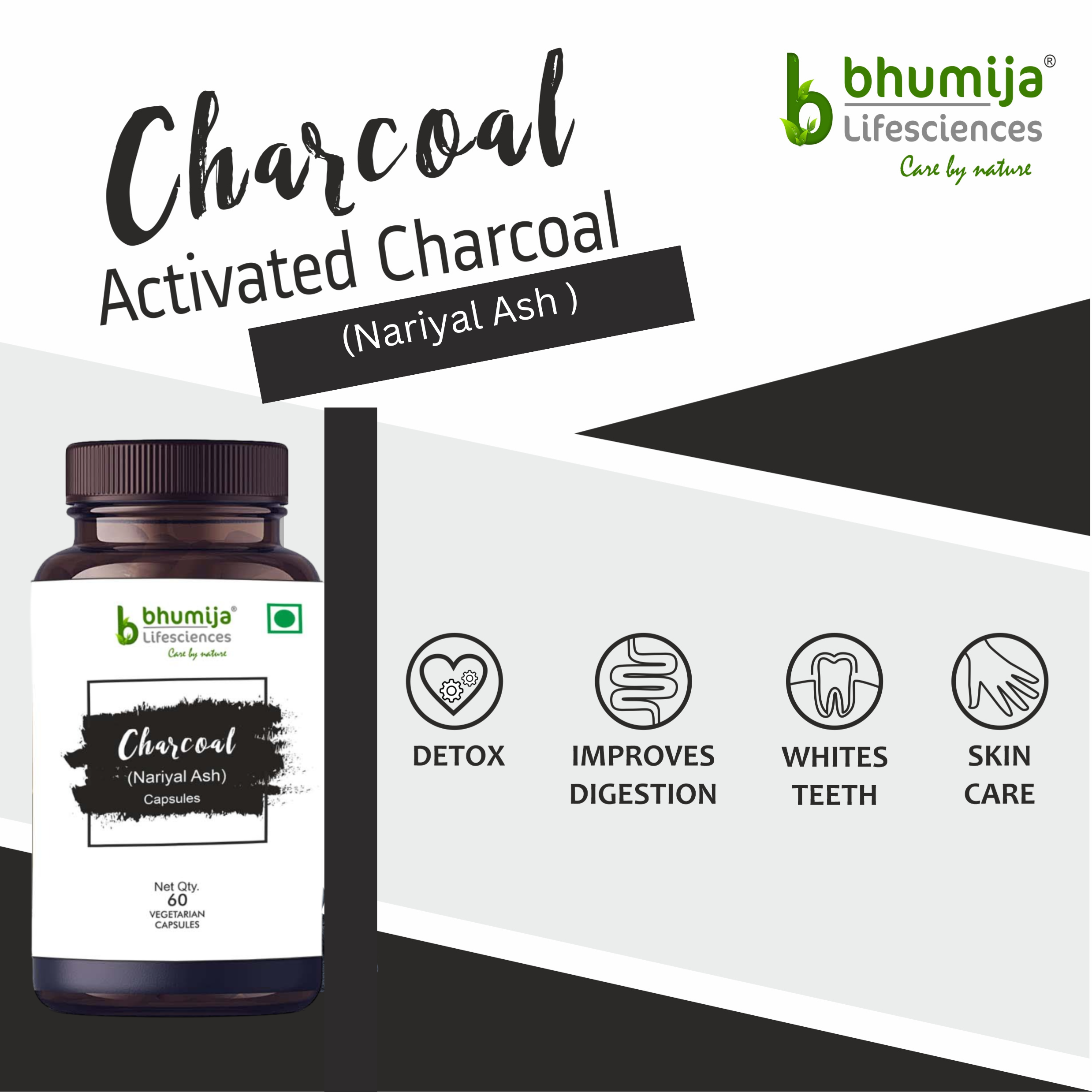 Bhumija Lifesciences Activated Charcoal 60 Capsules 1000mg