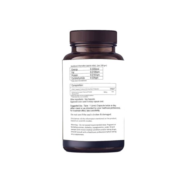 pure coconut-shell activated charcoal formula crafted to support relief from gas, bloating and acidity. Designed for deep internal cleansing,it naturally binds toxins and keeps your gut feeling light and clean.