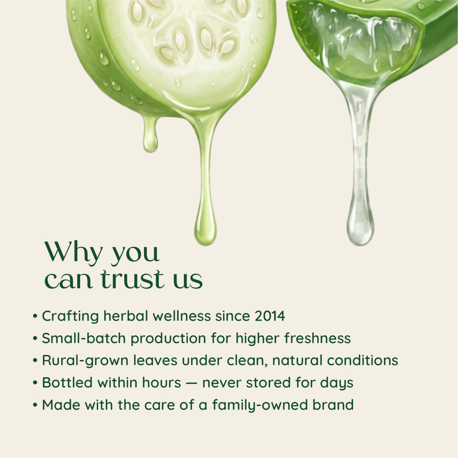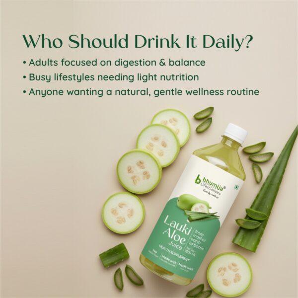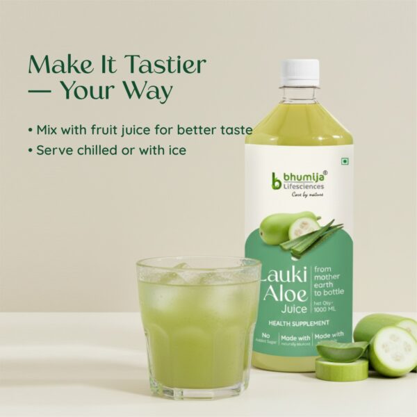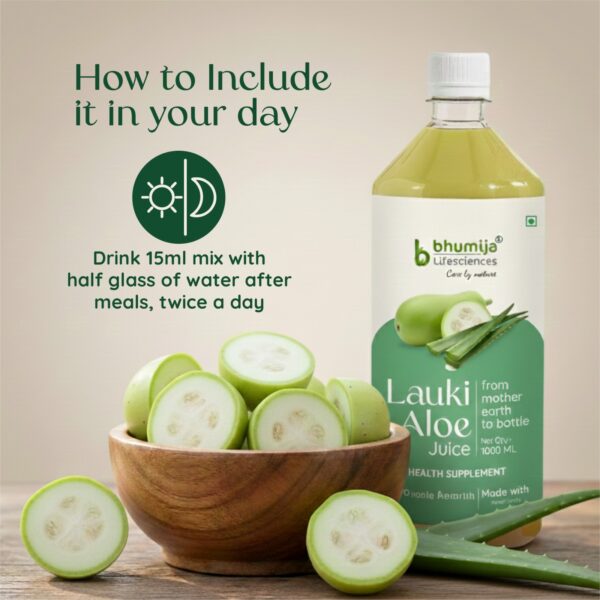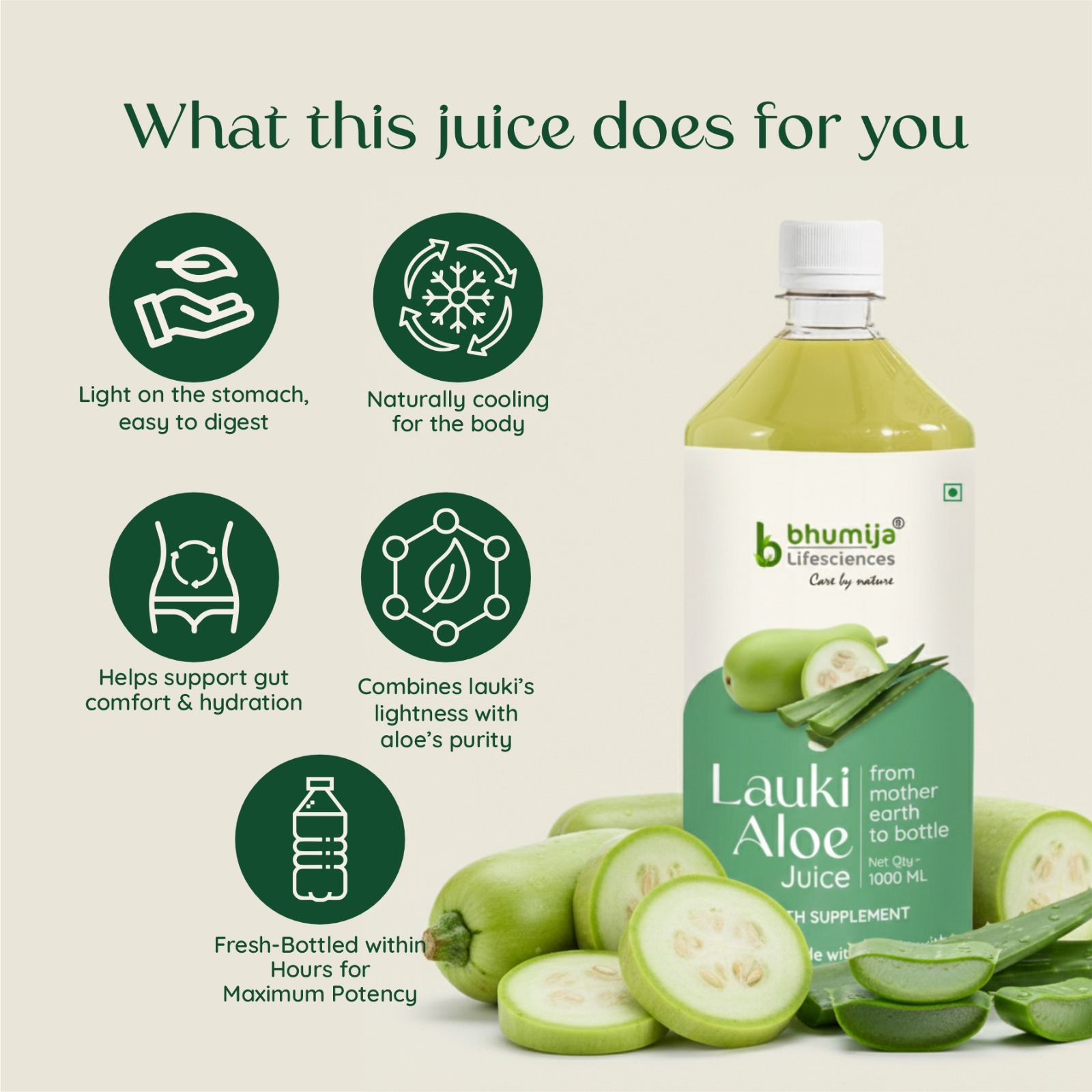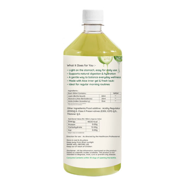 It is a natural health juice made from fresh Lauki (bottle gourd) and pure Aloe Vera to support digestion and overall wellness.