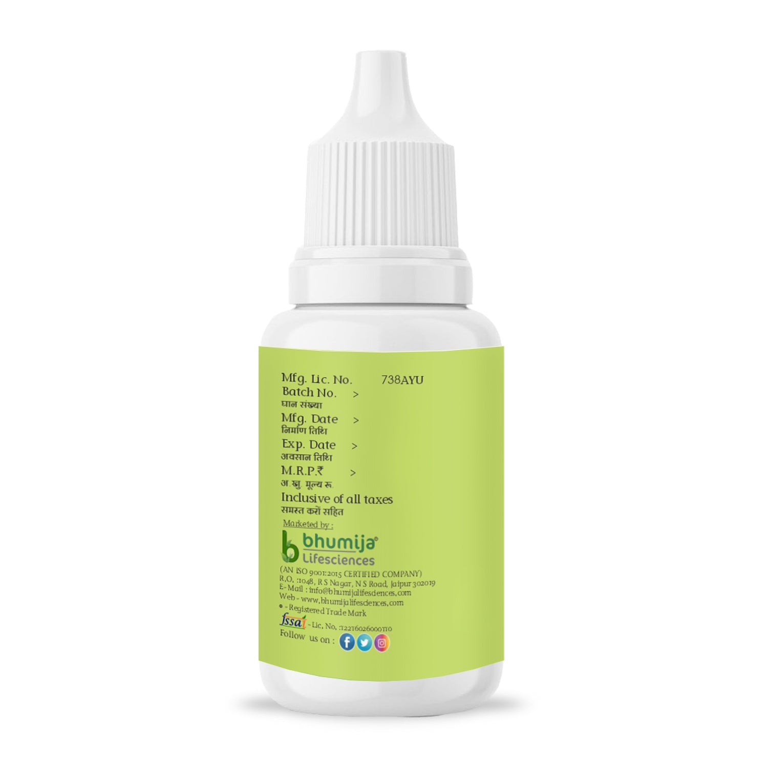 Take 2–3 drops in lukewarm water, tea, or juice and consume 2–3 times daily