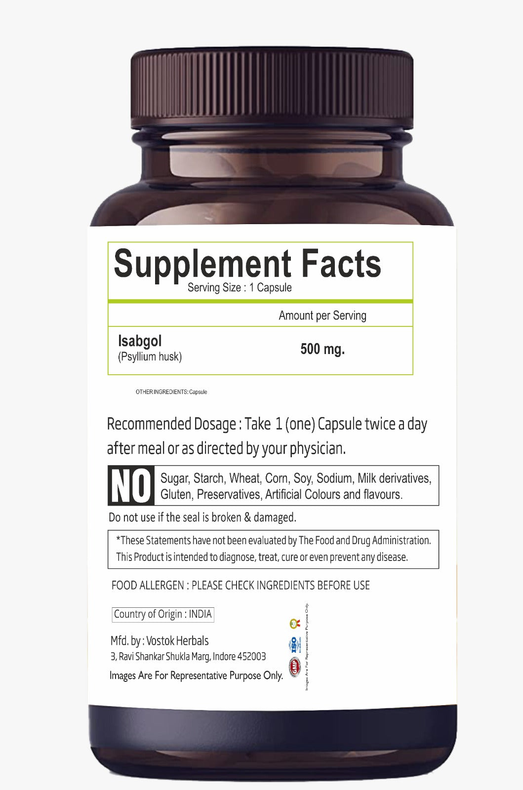 Bhumija Lifesciences Psyllium Husk (Isabgol) 60 Capsules