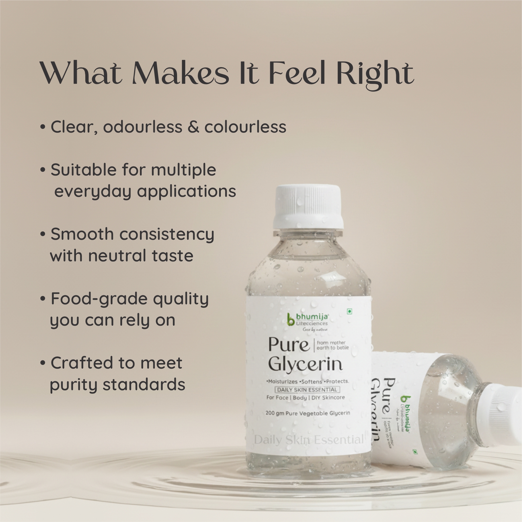 While using Bhumija Glycerine for the face, we recommend mixing it with your usual cream or water. A dilution is a must because it is in pure form.