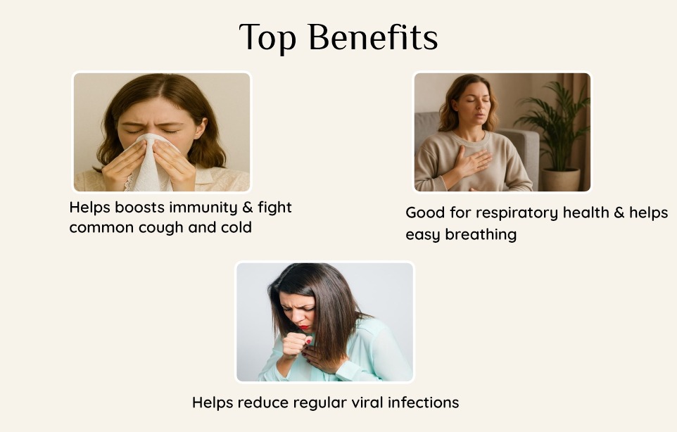- Helps relieve cough, cold, congestion, and promotes easy breathing.