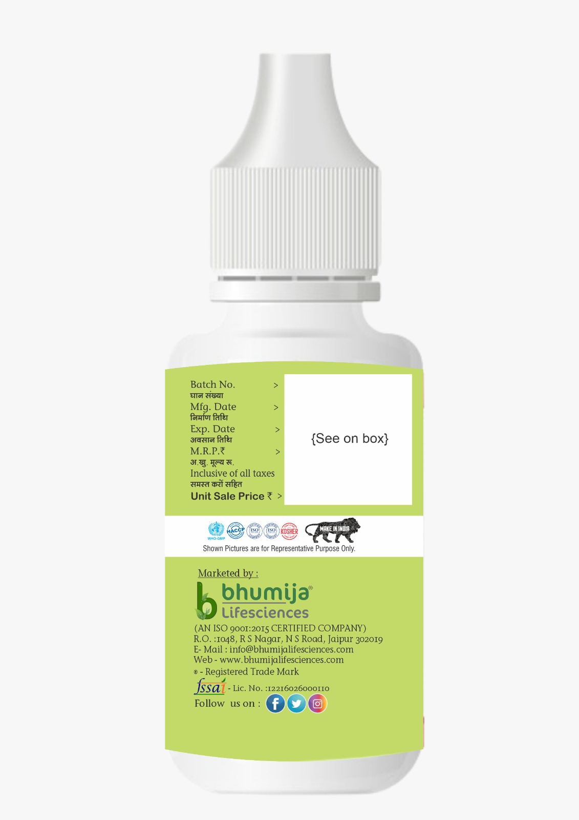Take 2–3 drops in lukewarm water, tea, or juice and consume 2–3 times daily