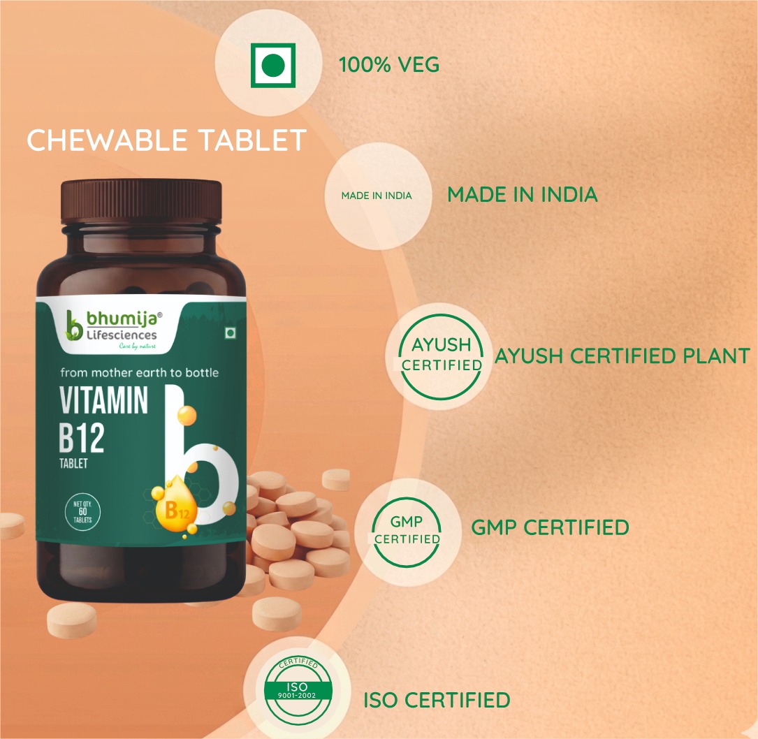 Bhumija Lifesciences Vitamin B12- 60 Chewable Tablets for Energy & Brain Health
