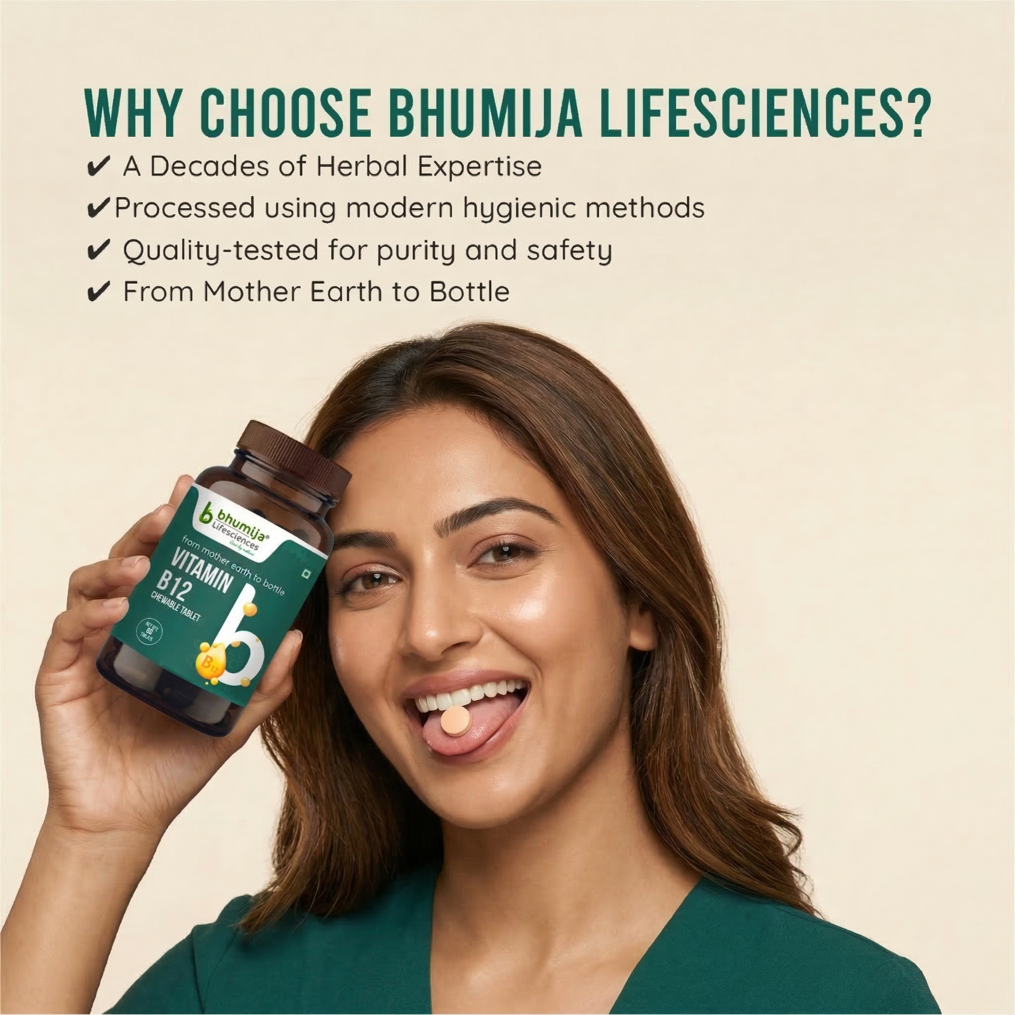 Main Bhumija Lifesciences Vitamin B12 Chewable Tablet pichle kuch hafton se use kar rahi hu. Iska taste achha hai aur chewable hone ki wajah se lena kaafi easy hai. Mujhe 2–3 weeks ke baad energy aur weakness me improvement feel hua. Ye instant result nahi deta, lekin regular use se body ko support milta hai. Overall daily use ke liye ek achha option hai
