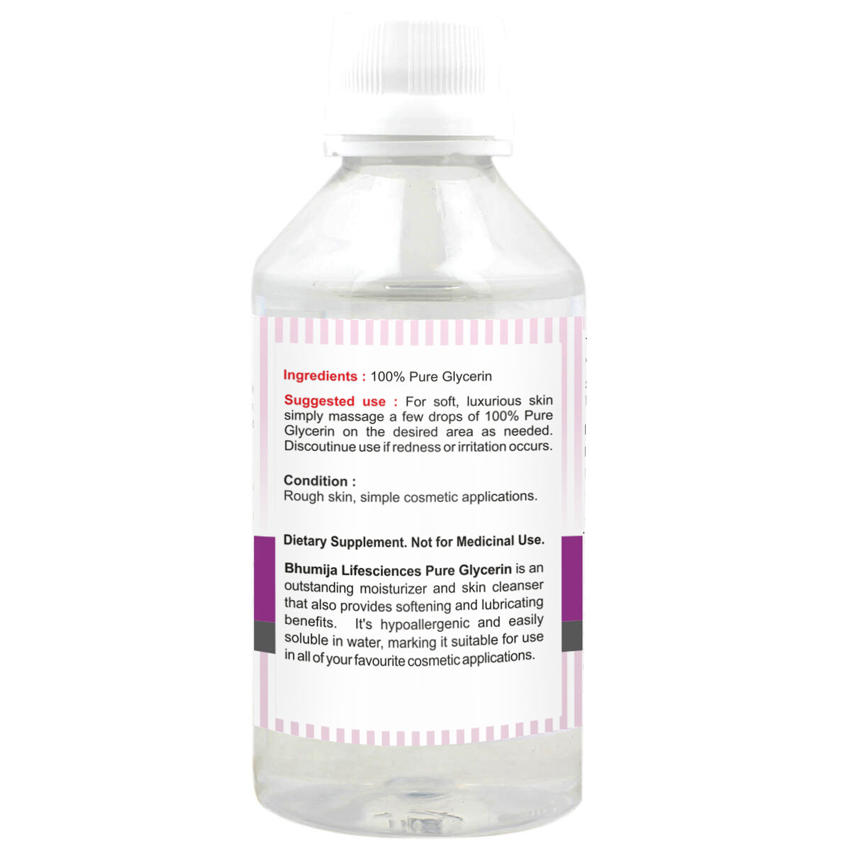 Bhumija Plant-based glycerin is a pure form from nature. Glycerin has been listed as a safe ingredient for skin by EU cosmetics. Our glycerin is pure and totally safe for all skin types.